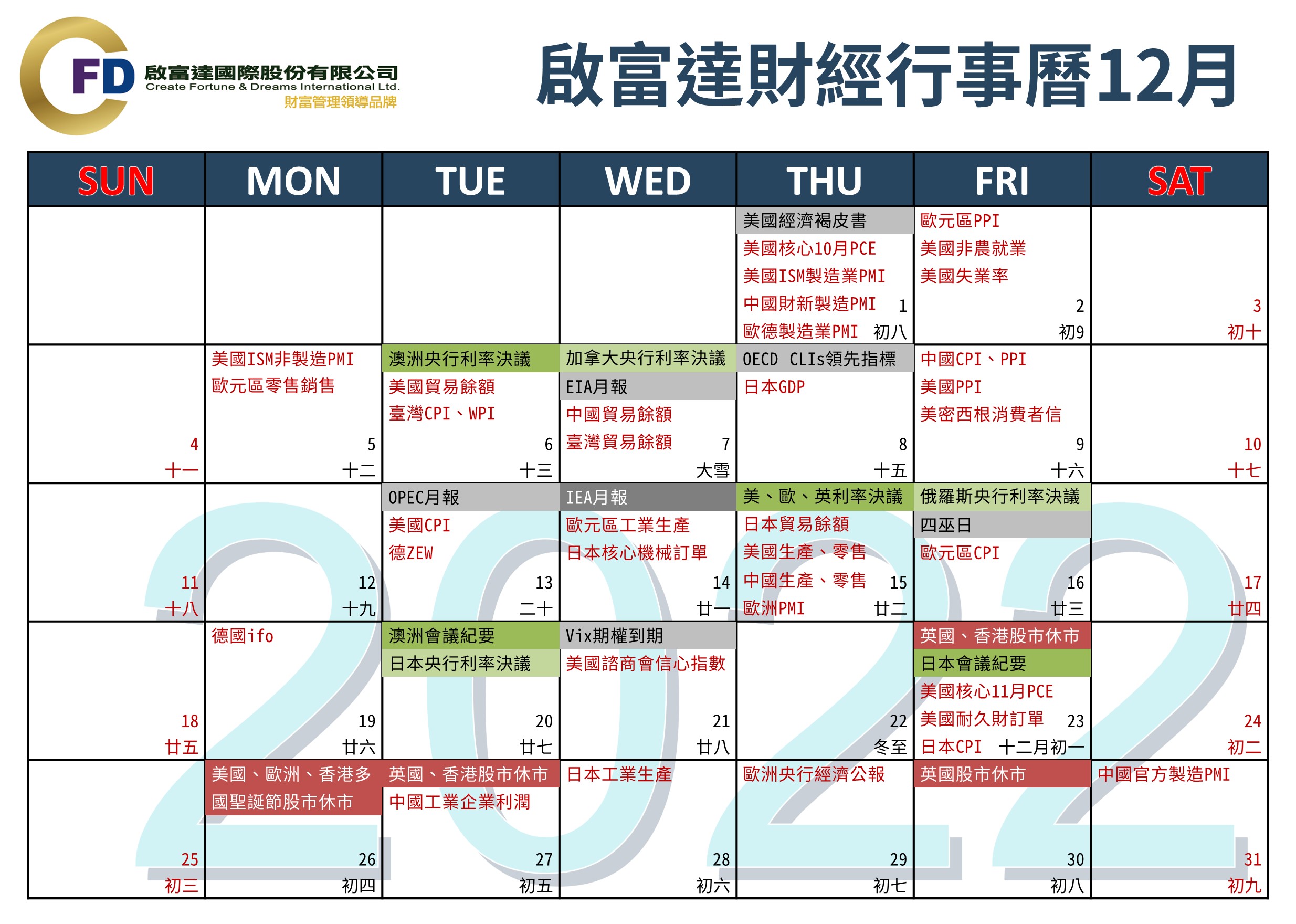 【啟富達國際】國際金融市場資訊回顧和觀察重點1121 - 1127