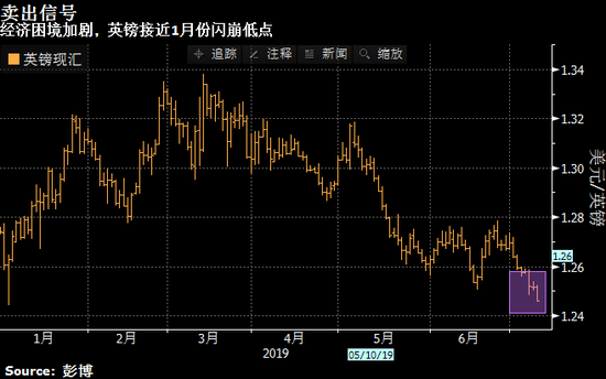 最近幾周,政治風險的上升已經讓英鎊步履蹣跚。在英國下一任首相競選接近尾聲之際,處於領先地位的鮑里斯·約翰遜仍留有無協議脫歐的選項。自英國首相特里莎·梅表示會辭職以來,英鎊已下跌了大約2%。