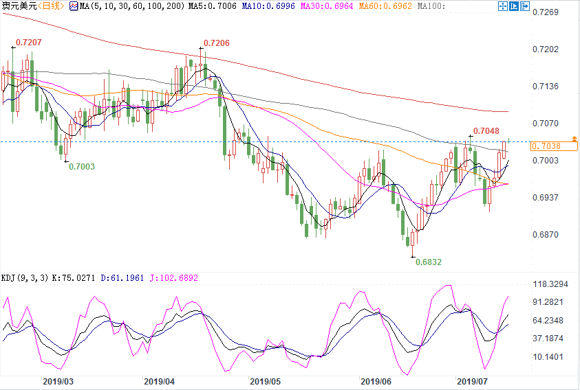 匯通財經易匯通軟件顯示,北京時間7月16日10:28,澳元兌美元報0.7034/38。