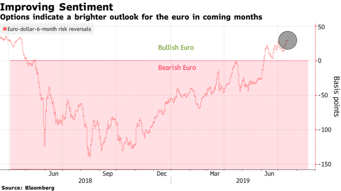 期權價格顯示,投資者當前對歐元的信心達到一年多來的最高水平,儘管外界普遍預期歐洲央行將發出降息信號,表明利率可能進一步降至零以下。雖然最早本週出台政策的可能性推高了歐元兌美元一週的隱含波動率,但該指標仍低於去年的平均水平。