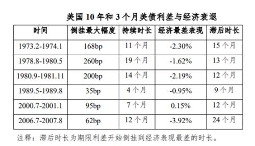 即使在倒掛幅度最小的 1989 年 6 月至 1989 年 12 月,曲線倒掛最大幅度僅為 18基點,美國經濟依然在 9 個月之後步入了衰退。