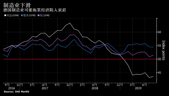 IHS Markit經濟學家Phil Smith說:「德國仍然是一個雙速經濟體,服務業的持續增長勉強彌補製造業的持續疲軟。雖然略有改善,但調查中的產出數據不足以消除第三季度GDP再次輕微萎縮的威脅。」