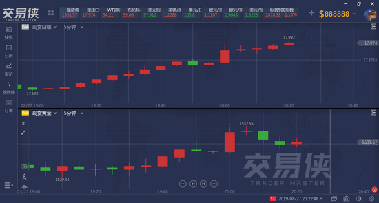 週二晚,白銀價格突然短線拉升,國際白銀漲幅一度擴大至1.9%,觸及18美元/盎司,刷新近兩年高位。白銀期貨2019年12月合約短線拉升至18美元/盎司,日內漲1.18%;上金所白銀T+D漲幅擴大至2%。國際白銀8月迄今為止已漲逾10%。