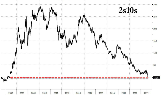 在白銀價格拉升的同時,美債殖利率曲線的倒掛情況也在加劇。美國2年期與10年期國債殖利率倒掛幅度達到金融危機來最大,而且3個月和10年期美債期貨殖利率曲線倒掛幅度也達到2007年3月來最大。