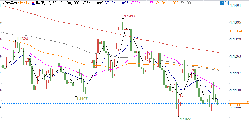 匯通財經易匯通軟件顯示,北京時間8月29日15:39,歐元兌美元報1.1076/83。