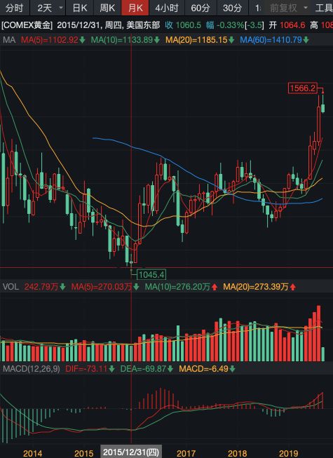 6月以來,受多重因素影響,黃金啟動了一波久違的強勢上漲,其中6月漲幅7.73%,創下兩年來最好月度表現,7月微漲近1%,8月再度大漲7.23%,金價一舉站上1500美元,甚至一度突破1560美元,創下6年多以來最高點。