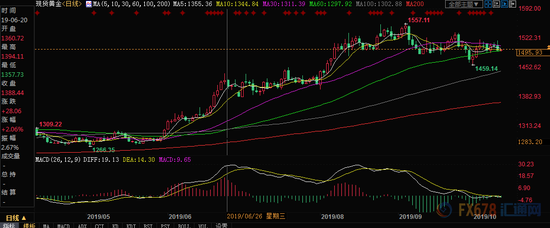 週四(10月10日)公佈的CPI環比在9月份漲幅不及預期,因二手車成本創出一年最大跌幅。美聯儲官員講話稱擔憂美國經濟狀況,但會根據實際情況決定是否支持降息。CPI數據不及預期或成為美聯儲第三次降息的理由。數據公佈之後,現貨金價短線小幅衝高後迅速下挫8美元。而後現貨黃金跌破1500美元。