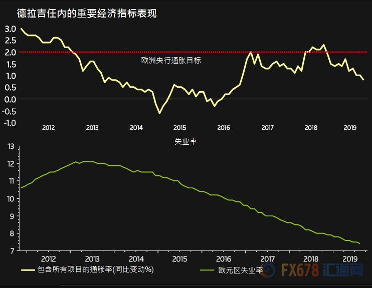 不過德拉基可能感到些許失望:因為通膨率仍遠低於歐洲央行「低於但接近2%」的目標,意味著他成為首位在任內從未升息的歐洲央行行長。而在其任內實施的空前大規模刺激舉措使得繼任者已無多少彈藥來抗擊另一次危機。