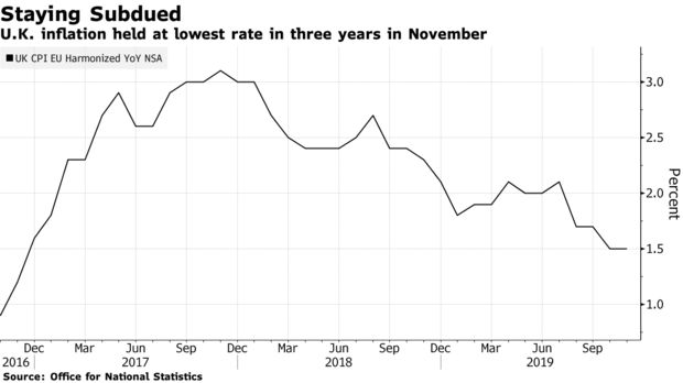 週三公佈的數據顯示,英國11月份通脹率維持在三年來的最低水平,在英國央行準備宣布今年的最後決定之際,這為鴿派委員提供了論據。