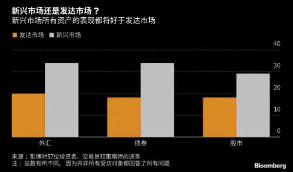 在過去十年中為投資者的投資組合增加了11萬億美元後,新興市場來年將繼續為投資者們創造財富。據彭博對57位全球投資者、策略師和交易員有關明年展望的調查顯示,發展中國家資產的表現將好於發達國家,其中亞洲前景最佳。新興市場股票和債券的總財富現在高於25萬億美元,超過了美國和德國經濟的總和。