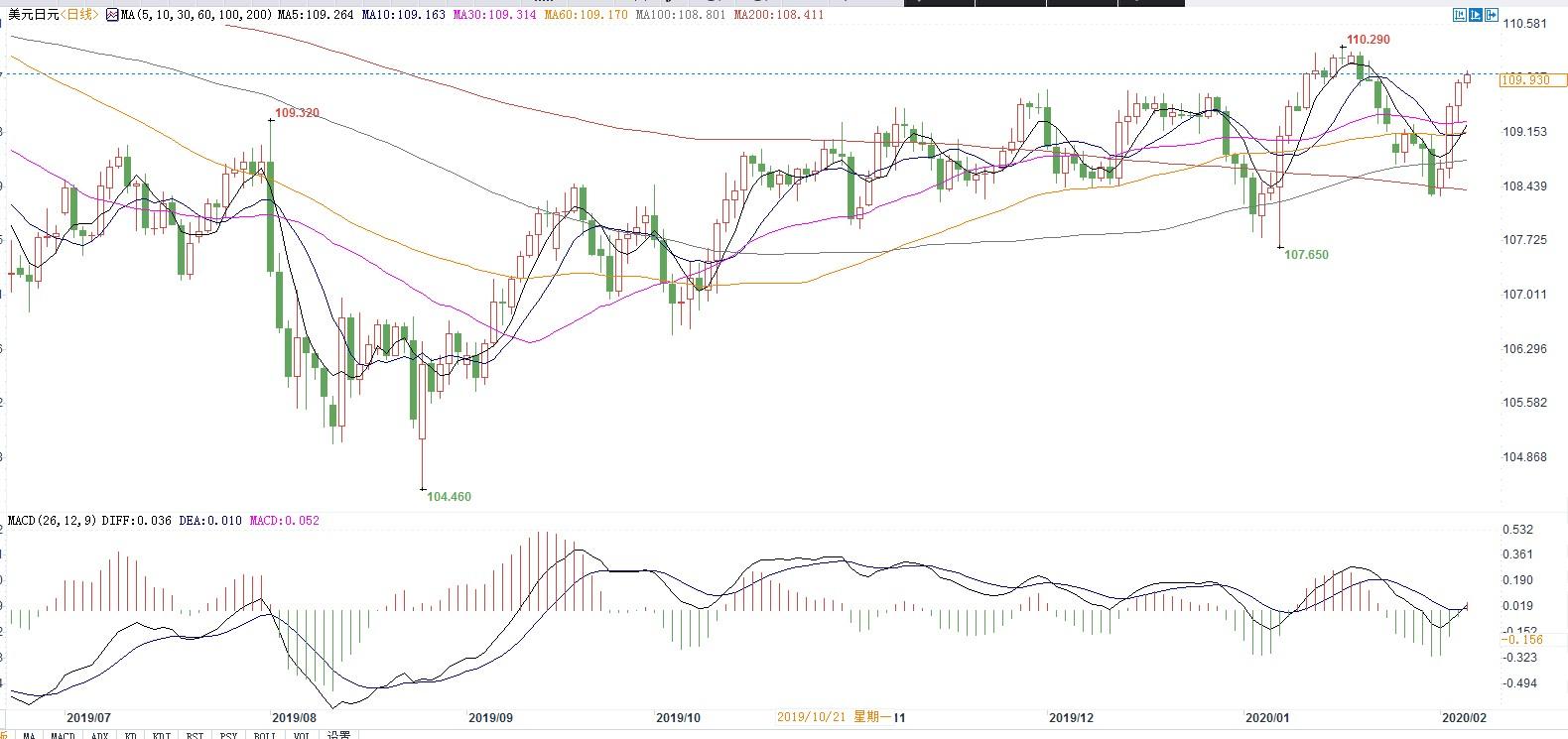 匯通財經易匯通軟件顯示,北京時間2月6日14:17,美元兌日元報109.950/976。