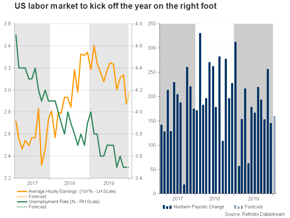 市場分析師Christina Parthenidou認為,如果美國1月份工資未能上漲,這也將是一個令人失望的信號,表明美國聯準會在2019年的三次降息(每次降息25基點)尚未在整個經濟中奏效,通膨可能需要更多時間才能通過消費者支出增加,達到2.0%的目標水平。儘管現在這樣說還為時過早,若工資果真不如預期,這將證實市場對年底美國聯準會降息的預期,即使美國聯準會表示2020年維持貨幣政策不變,且點狀圖顯示美國聯準會將實行加息。
