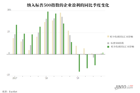 Amrith Ramkumar預計,納入標普500指數的企業,第四季度的利潤或將與一年前的水平相當,當時不少企業因美聯儲加息“後遺症”而生存艱難。數據顯示,納入標普500指數的企業中,不少跨國公司在美國以外的收入佔其總收入的一半以上,這些公司的利潤比面向國內的公司利潤要差。