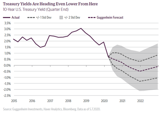 古根海姆全球首席投資官表示,我預計10年期美國國債收益率將很快跌至25個基點或更低水平,中期有可能變為負值——我們的預測目標是-50個基點,在某些情況下可能還會走得更低。近期,2年期國債收益率徘徊於10個基點的新低附近,表明市場雖然認為政策利率將維持在零水平,但國債收益率存在很快跌入負值的風險。