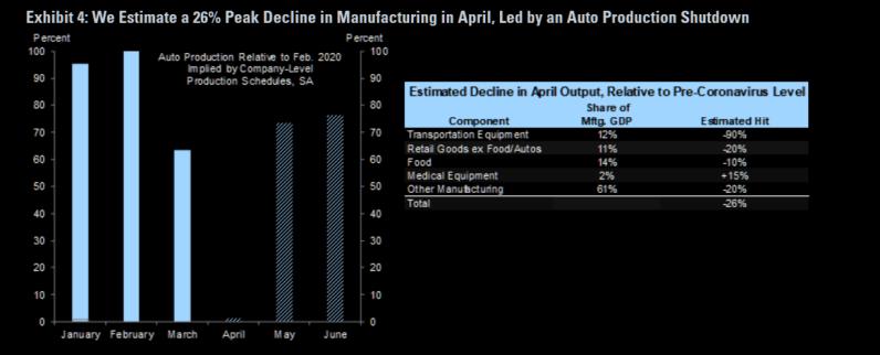 高盛將美國Q2GDP年化預期從-34%下調至-39%,同時將失業率從15%上調至25%。