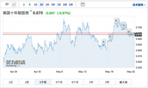 10年期美債收益率隔夜再收跌0.81個基點報0.672%。截至第一財經記者今日上午發稿時,10年期美債收益率進一步走低至0.670%。