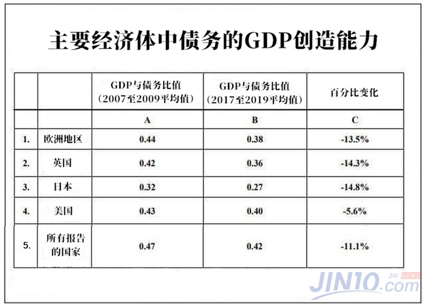 而現在的問題是,未來恐難有充足的經濟增長將財政政策推入正軌,不少國家目前的經濟增長幾乎是依靠債務大水漫灌才實現的。摩根大通指出,當前債務的邊際效用正在縮小,也就是說,現在哪怕只是要創造最小的經濟增量,也需要成倍地增加債務槓桿才可以。