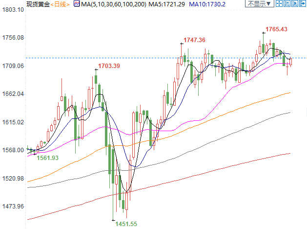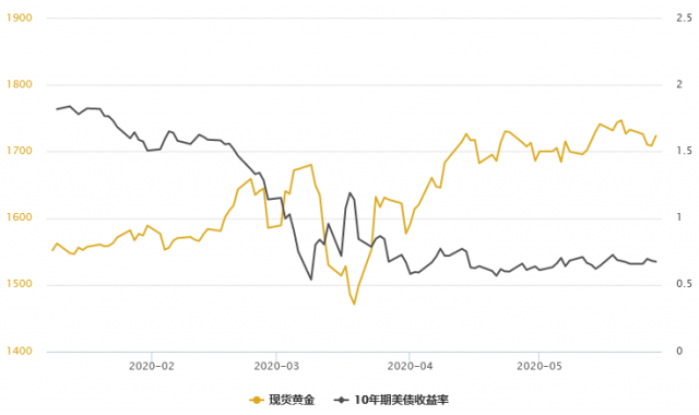 週三一度跌破千七大關,華盛頓特區從本週五起重新開放;英國新冠病毒警報系統將從四級降至三級;瑞士宣佈解除「緊急狀態等,全球逐步解封,放鬆了對冠狀病毒的限制,日本、歐元(1.1075, -0.0002, -0.02%)區的刺激進一步助漲了人們對全球經濟可能反彈的樂觀情緒,避險情緒緩解。