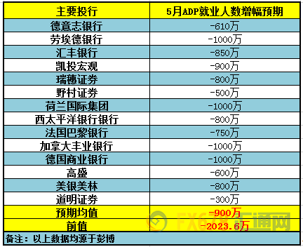 北京時間週三(6月3日)20:15將公佈美國5月ADP就業人數,該數據素有“小非農”之稱,包括德意志銀行在內的14家大型投行發表了對此的前瞻,此次數據的預期分歧較大,具體如下: