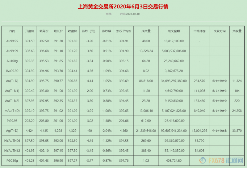 ② 迷你金T+D收盤下跌1.00%至391.09元/克,成交量13.0064噸,成交金額51億702萬4828元,交收方向“多支付給空”,交收量24.258噸;