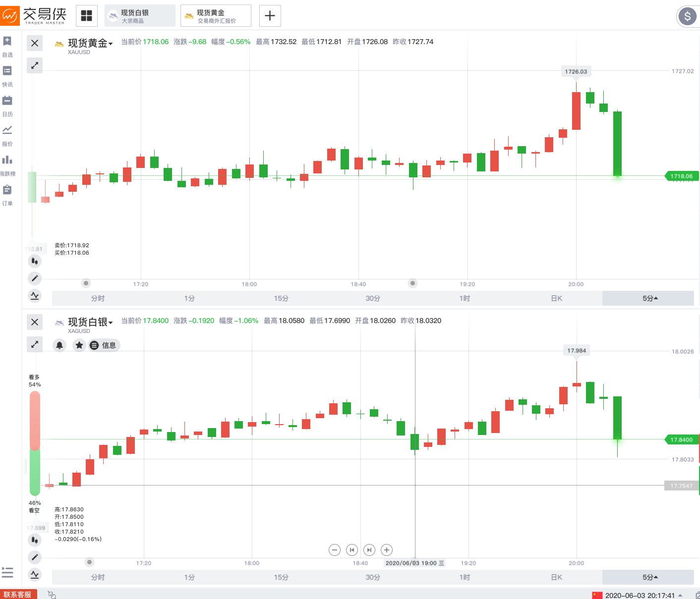 “小非農”ADP數據公佈後,現貨黃金短線小幅下挫,三分鐘後現貨黃金短線跌幅擴大至7美元,報1716.63美元/盎司。現貨白銀短線下挫0.12美元,跌1.16%報17.82美元/盎司。美股三大股指期貨短線波動不大。道指期貨漲0.8%,納指期貨漲0.41%,標普500指數期貨漲0.55%。