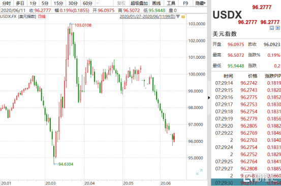 美元指數方面,在昨晚鮑威爾講話之後,美元指數一度直接跌破96.0的重要關口,從上月底的100.0點已經連續多日弱勢回落。
