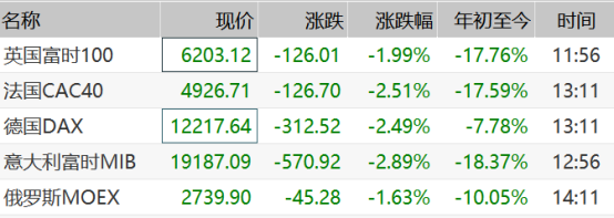 歐洲市場的三大指數開局就集體暴跌超3%,目前依然不見反彈跡像出現: