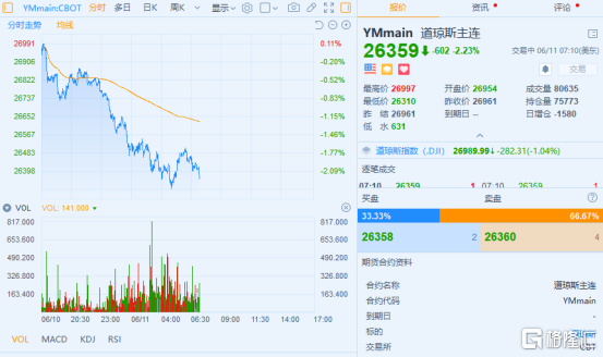 同時,美股的道瓊斯期貨指數目前已經提前大跌超2%: