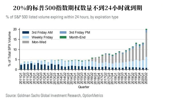 更大的問題是,根據對超短期動量交易的追踪,高盛發現即將到期的期權數量猛增——高達20%的標普500指數期權還有不到24小時就到期。