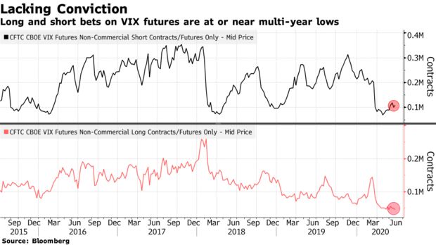 VIX期貨的多頭和空頭押注處於或接近多年低點: