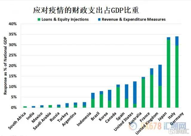 下圖顯示了世界主要經濟體的財政政策力度。財政政策以國家GDP的百分比表示。