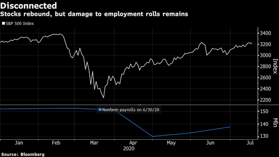 但是,由於每週還有超過一百萬名美國人加入失業行列,失業率仍然高於戰後任何一次經濟衰退中所見的情況,因此,股市上漲不代表經濟成功。在7月15日發布的Quinnipiac 民意調查中,接受調查的選民中半數表示,他們相信拜登更能管理經濟,45%的選民則支持特朗普,這是特朗普第一次在這個議題上輸給拜登。