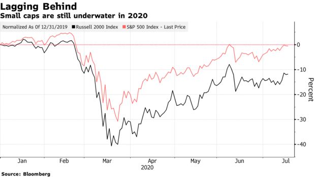 儘管標普500指數自3月低點以來已反彈近45%,幾乎抹去了今年的跌幅,但其中大部分漲幅是在6月初之前實現的,而且在很大程度上要歸功於高權重科技股的上漲。相比之下,羅素2000小型股指數今年迄今仍下跌12%。