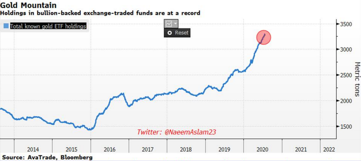 如下圖所示,黃金ETF持倉規模近期持續上升,交易員往黃金市場注入了大量資金。