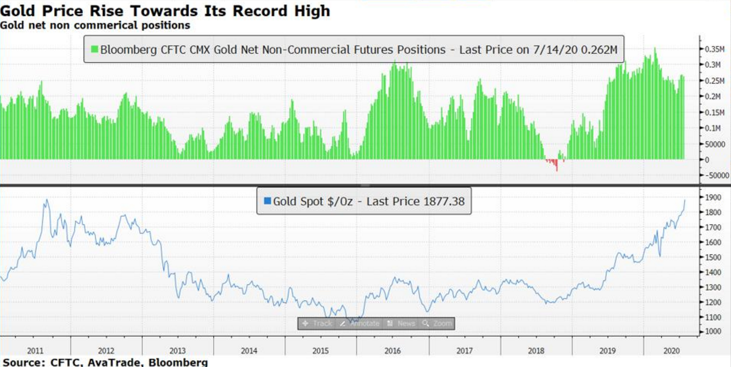 除此之外,CFTC持倉數據也顯示,黃金非商業性投機性淨多頭頭寸不斷增加,交易者已經為推動金價突破歷史新高瘋狂蓄力。
