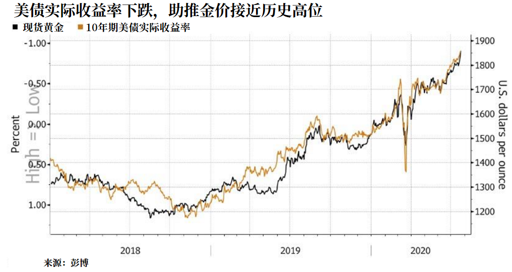 從目前的情況來看,低利率、大規模刺激政策(包括財政政策和貨幣政策)、美元走軟是黃金的主要利多;通縮前景以及美債收益率可能趨陡則是黃金突破歷史新高的主要利空。