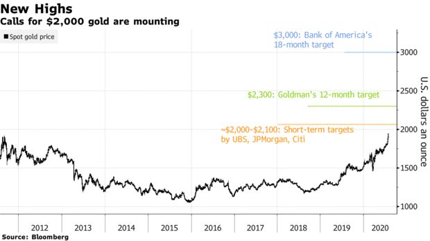 隨著新冠疫情顛覆了全球範圍內的經濟增長,黃金已成為避險資產中投資者的不二之選。得益於實際利率水平的下降、近期美元的疲軟、世界各國史無前例的刺激措施以及不斷升級的國際地緣緊張關係,現貨黃金價格週二一度觸及1981.27美元,比2011年創下的歷史最高紀錄高出了大約60美元。在扣除通膨因素的美國國債殖利率已經成為負值的情況下,黃金現已成為卓具吸引力的風險對沖工具。