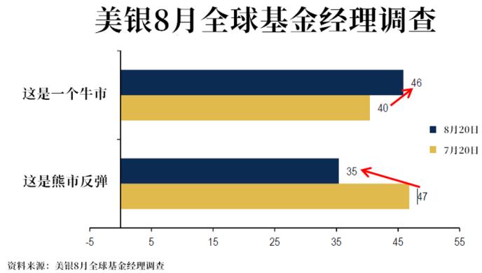 整體來看,基金經理們對股市和經濟的看法更顯樂觀了。該調查中有46%的投資者表示“這是一個牛市”,高於7月調查時的40%。受訪者認為長期牛市是股市價格上漲的主要原因,未來可能會有短暫的回調。