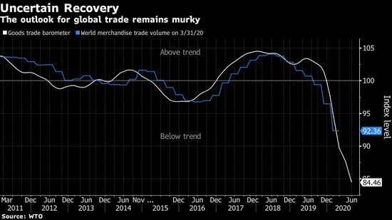總部位於日內瓦的世貿組織表示,全球貿易開始緩慢回升,此前6月份跌至紀錄最低點,但前景依然過於晦暗不明,而難以斷定是將實現急劇反彈,還是複甦的低迷勢頭將持續數月。