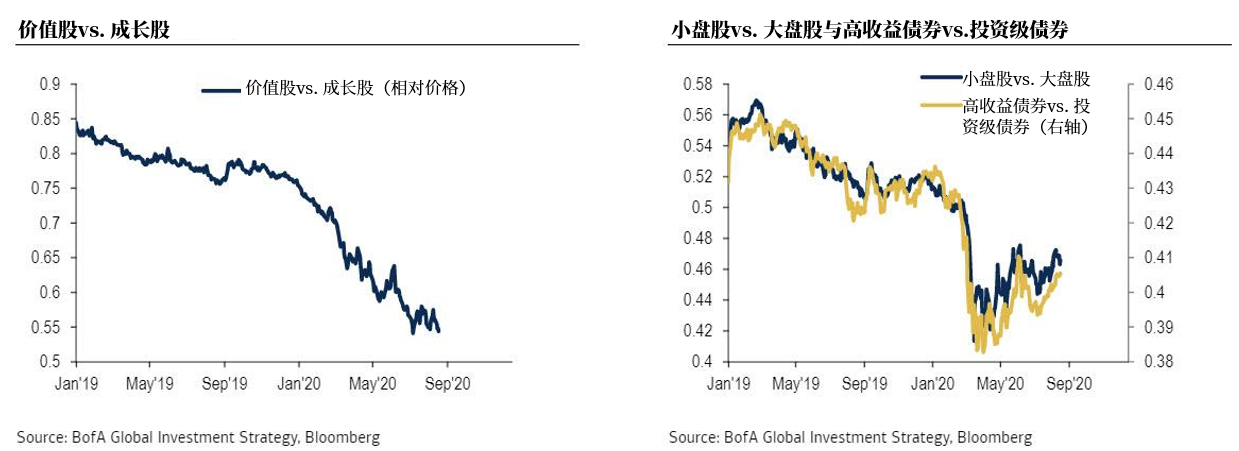 除了即將到來的兩個會議會影響政策,哈特奈特還認為,為了平衡疫苗與病毒、就業與死亡率的差距,美國8-10月的衛生、財政和貨幣政策可能會發生“混亂而明顯”的轉變。這意味著剛現雛形的交易輪換(大宗商品vs. 信貸、高收益債券vs. 投資級債券、價值股vs. 成長股、小盤股vs. 大盤股)已被削弱。