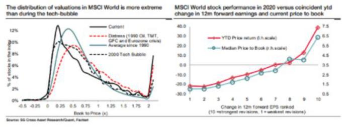 法興銀行量化研究主管拉普索恩(Andrew Lapthorne)指出,這是因為市場對未來收益的廣泛預測不同。市場對收益預期改善得越多,回報也就越高,這家公司股票的估值也會變得越高。