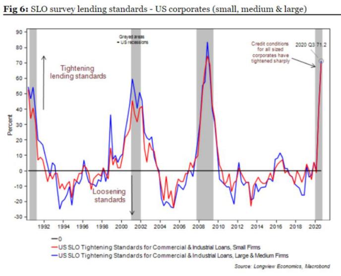 另一方面,銀行放貸標準正在收緊(更多細節見下圖),甚至比上次危機發生得還要更快。