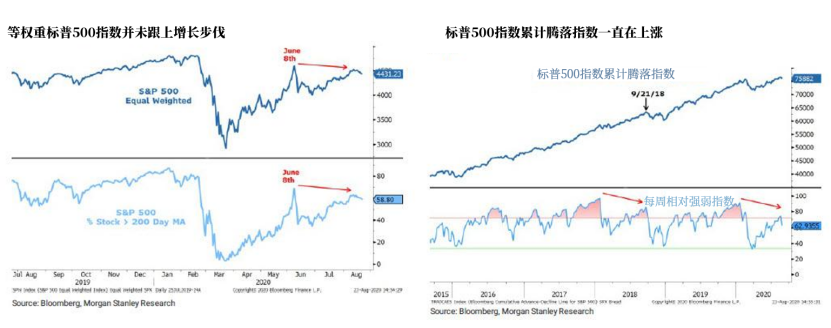 “市場廣度的收窄一直是這場美股反彈中的一大熱議特徵。我們感興趣的是,在自3月低點以來的這場反彈的前幾個月中,市場廣度表現出巨大的改善,這也是我們早早宣稱新一輪牛市開啟的原因之一。在我們看來,直到最近,廣度的收窄才成為了一個顯著的問題。”