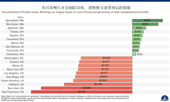 這在很大程度上是由於兩個因素:生活成本高,以及一些州失業福利的相對微薄。