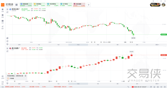 北京時間9月3日,歐盤盤初,現貨白銀下破27美元關口,最低跌至26.73美元,跌幅超2%,現報26.78美元;COMEX期銀跌破27美元/盎司,日內跌超1.5 %。
