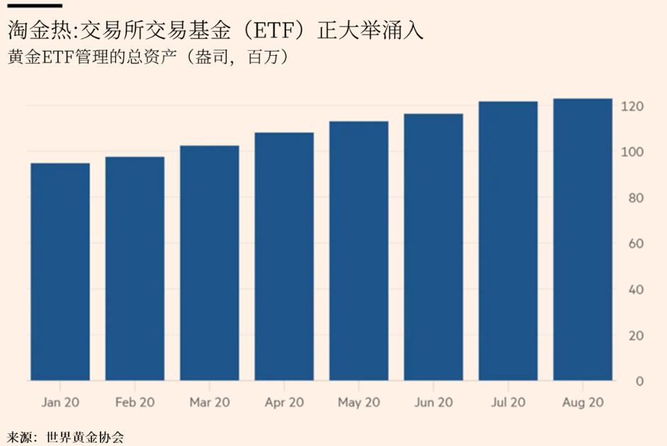 此外,今年有逾600億美元被投資者用於購買黃金ETF,這一規模相比於2009年金融危機期間擴大了50%。