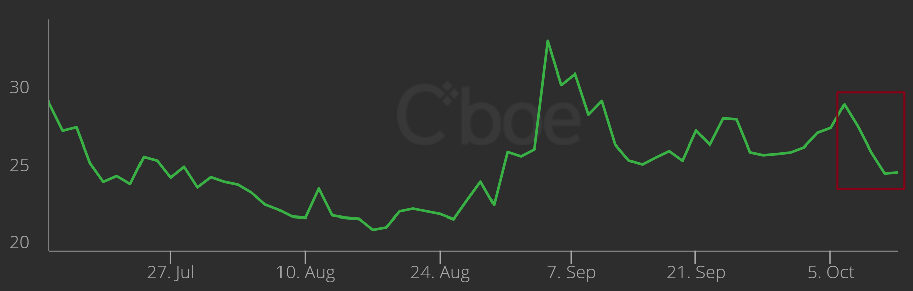 Gary注意到,上週整一周,此前一路上升的市場波動率(VIX指數)出現顯著持續下降,從近30水平降至25水平。他指出,此前波動率上升,是因為市場害怕不確定性。特朗普表態拒絕和平過渡權利,引發第三種可能的選舉結果,這是前所未見的。