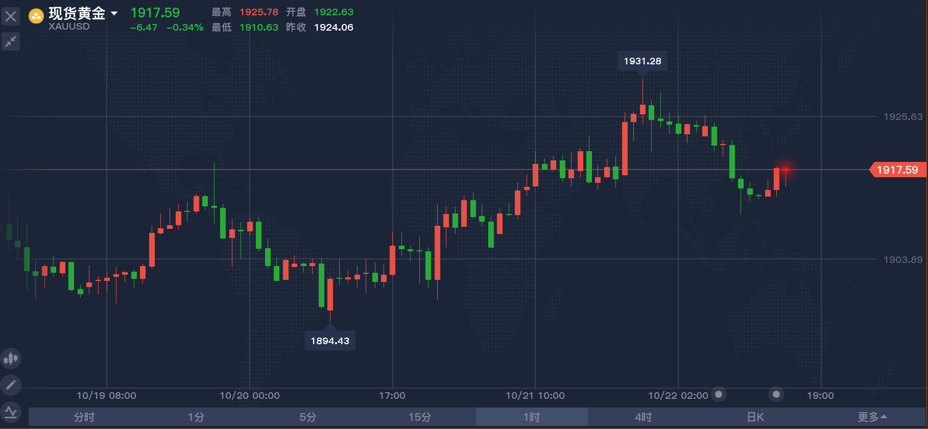 受到消息面刺激影響,昨日現貨黃金曾衝破1930關口。
