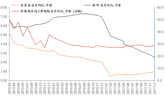按國家統計局這些數據進行推算,2017年扣除實物商品的網購之後,社會消費品零售總額的增速只有7.5%,而2016年該增速為8.5%,一年內實體店的消費額增速居然降了一個百分點,可見網店對實體店的替代性非常強。