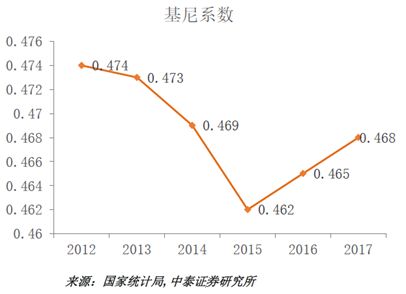 高收入者的邊際消費傾向低於低收入者,因此,收入差距的擴大對總消費是不利的。儘管高收入者收入增速的提高有利於高端消費的增長,但無助於中低端消費增長。2017年就出現了豪華汽車旺銷,增速超過20%,中低端乘用車接近零增長的局面;不僅乘用車領域如此,白酒、啤酒等許多消費領域都出現了類似情況。